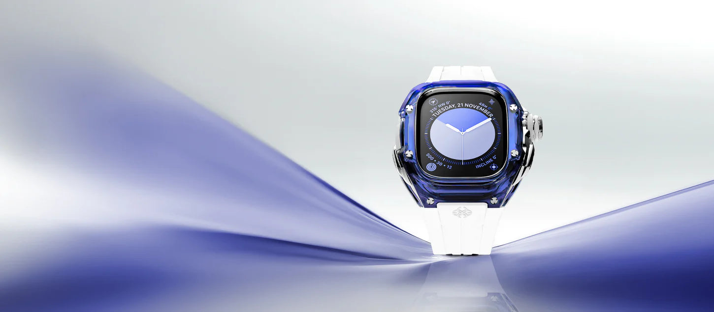 Explore the new transparent case for the Apple Watch Ultra. This collection offers a transparent casing and your choice of a bright white or translucent strap, ensuring a sleek, modern, and versatile look.