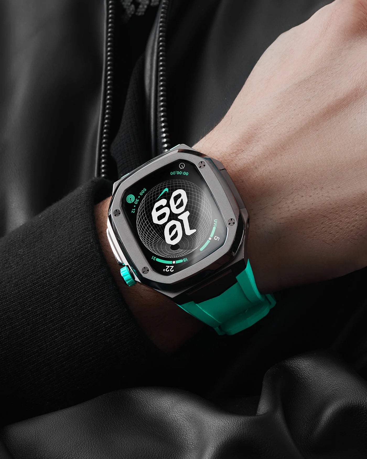 Our latest strap innovation is all about simplicity and durability. Made from top-grade fluoroelastomer for lasting comfort and equipped with a sturdy stainless steel mechanism, it's designed for quick and effortless attachment. Snap it on or off seamlessly, ideal for the active and practical user.