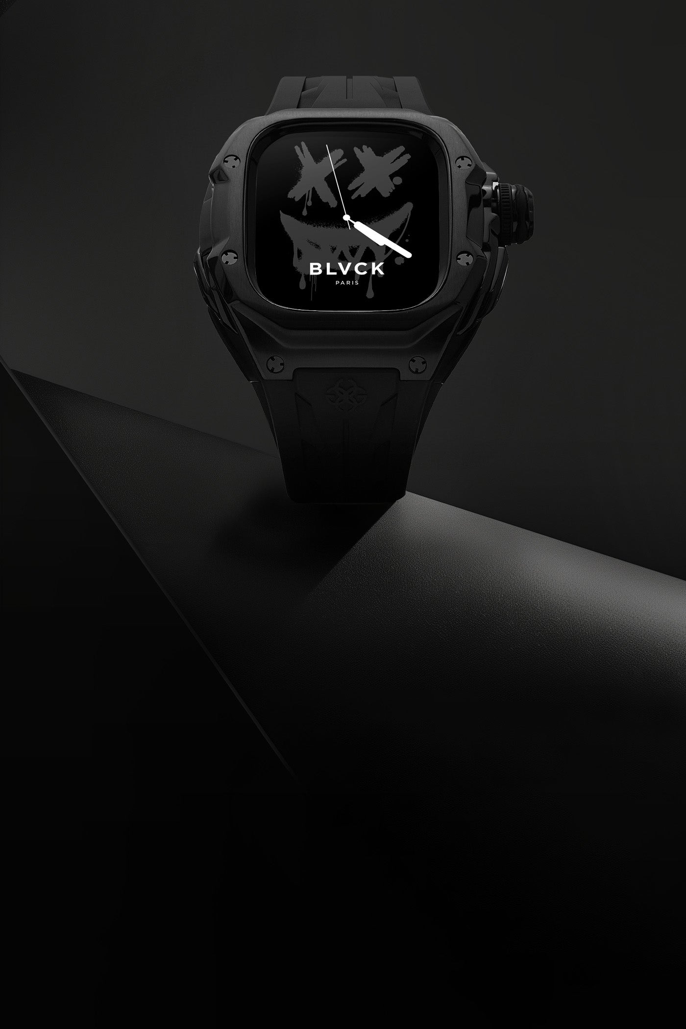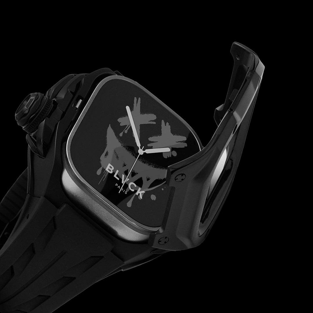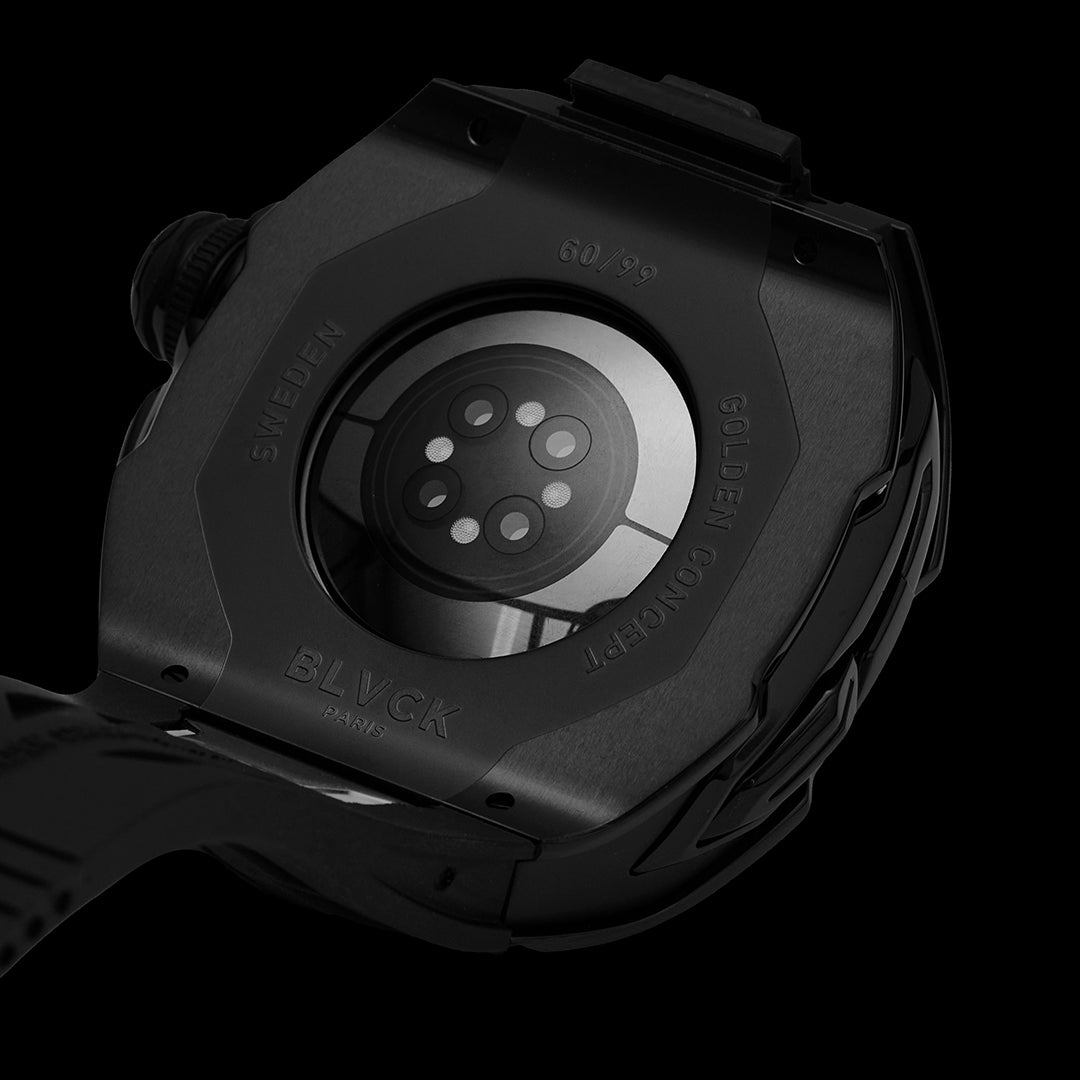 A blend of PVD plated titanium and stainless steel, paired with a black fluoroelastomer strap for the Apple Watch 49 mm. Showcases the Bvlck logo on the backside and buckle. Just 99 pieces up for grabs!When you purchase your watch, you will get access to exclusive watch-faces, made for this collaboration only.