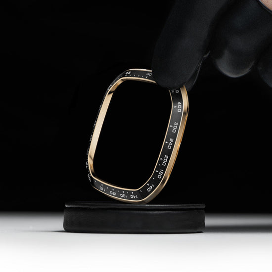 The bezel is made from high-quality ceramic, giving it a sleek and polished look. Each text and design is carefully engraved and hand-painted by skilled craftsmen, making every piece unique. The result is a beautifully crafted timepiece that combines elegance with exceptional quality.