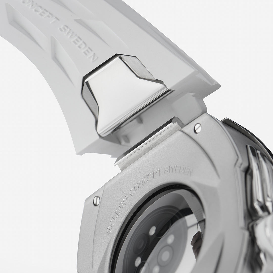 The Racing Sport now features our latest innovation, enabling you to change the straps with a single click, effortlessly matching your watch to your outfit. Crafted from Fluoroelastomers, these straps offer superior durability and comfort compared to traditional rubber, ensuring resilience and a flawless fit for any occasion.