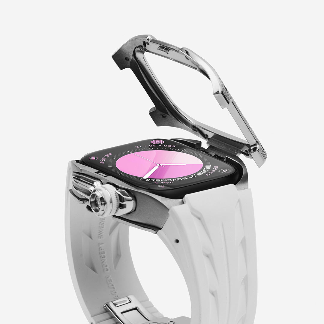 The Racing Sport Edition redefines convenience with its patented Hatch-Bezel® technology. This groundbreaking design allows for the effortless installation and removal of your Apple Watch at the push of a button.