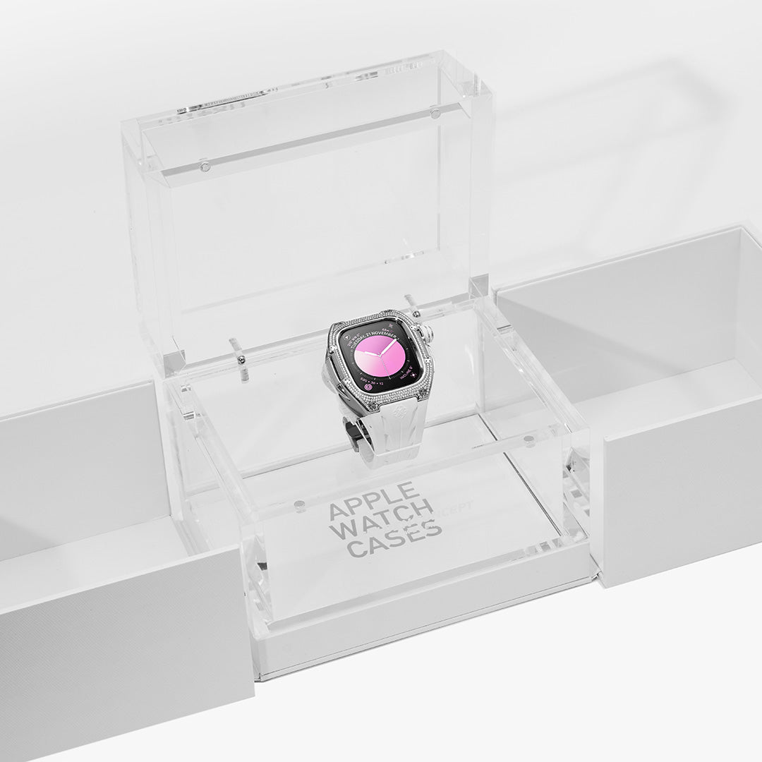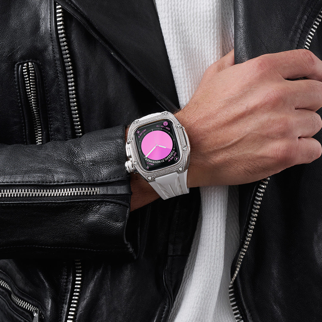 Combining precision craftsmanship with cosmic elegance, the Snowflake stands as a masterpiece of design. Skillfully adorned by hand, the bezel boasts 310 black Moissanite gems, ensuring that each case is a truly unique expression of luxury.