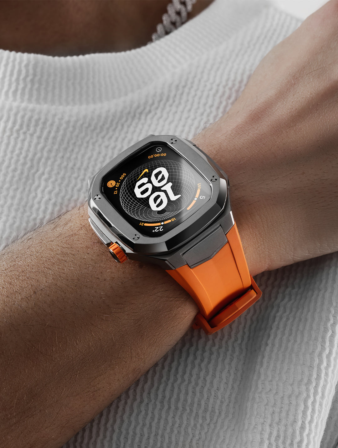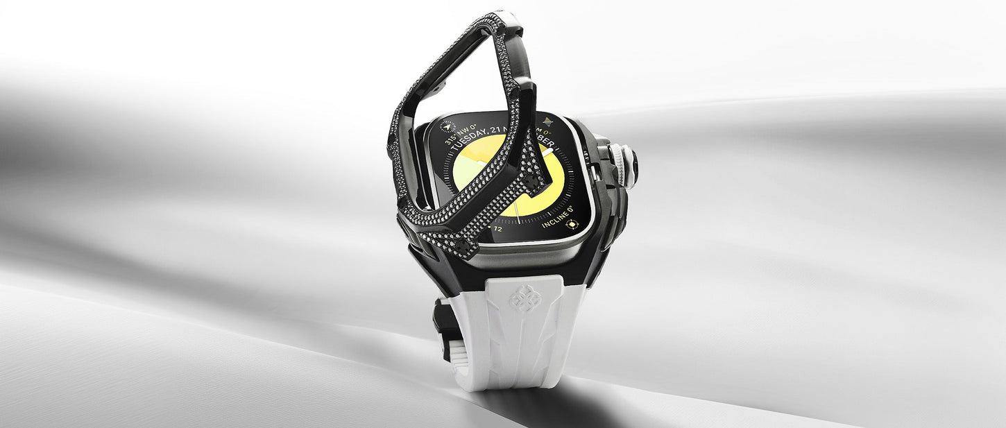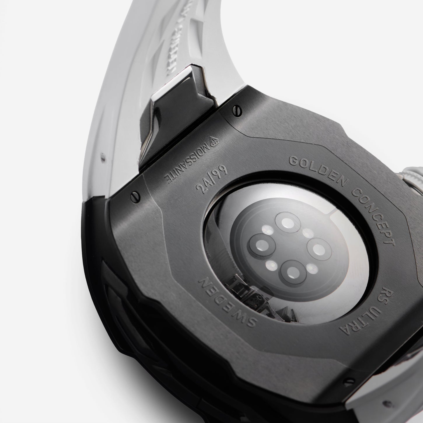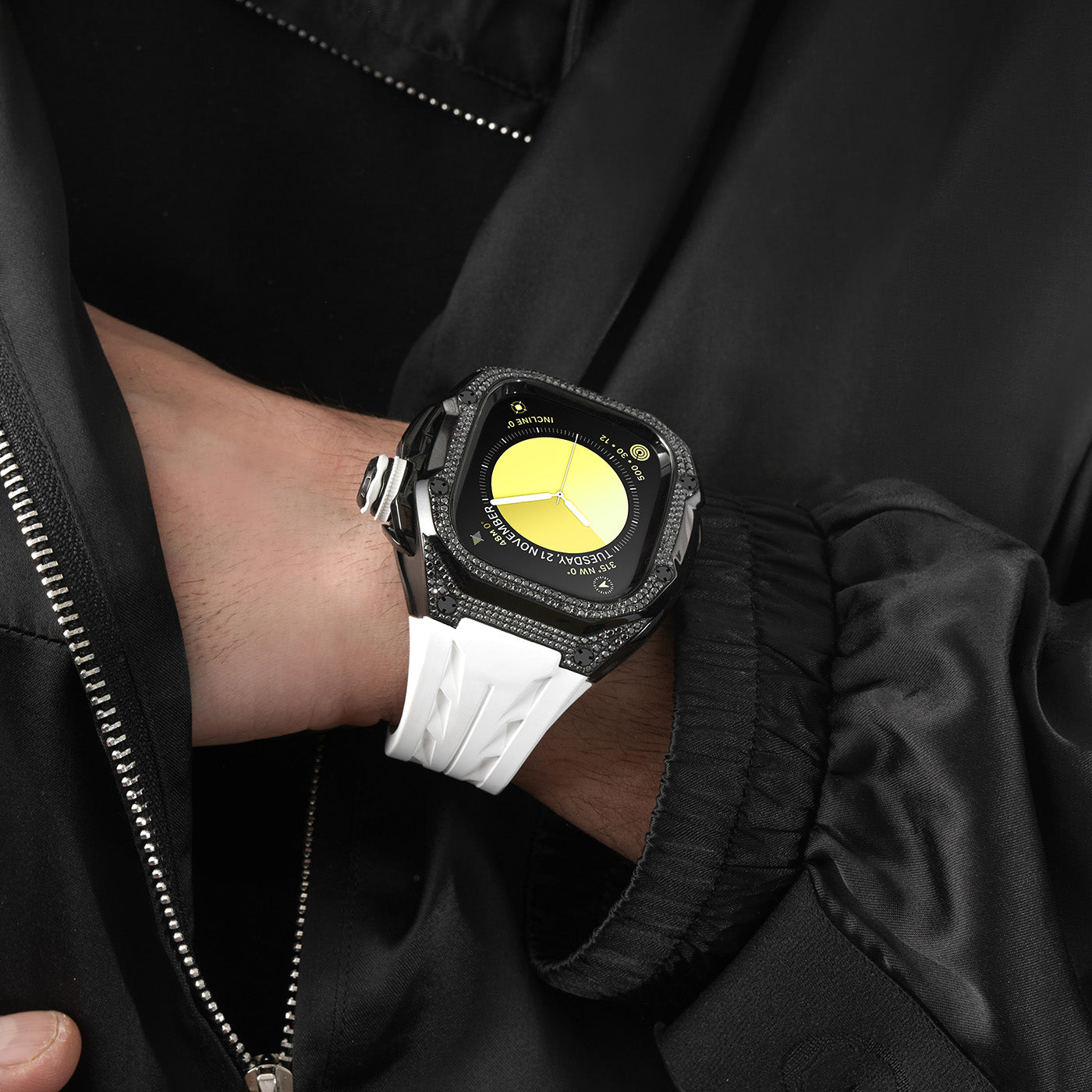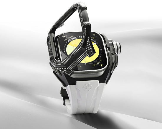 Designed for connoisseurs of detail, the Racing Sport Onyx Stone enhances your Apple Watch Ultra with black moissanite gems. Born in space, these gems have a unique black hue that distinguishes each case. Black Moissanites offer a deep, intriguing charm unlike traditional diamonds, enriching your device's allure.