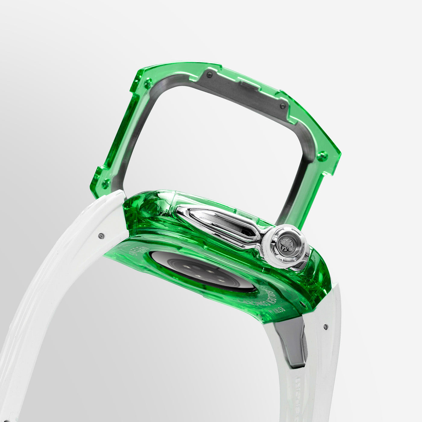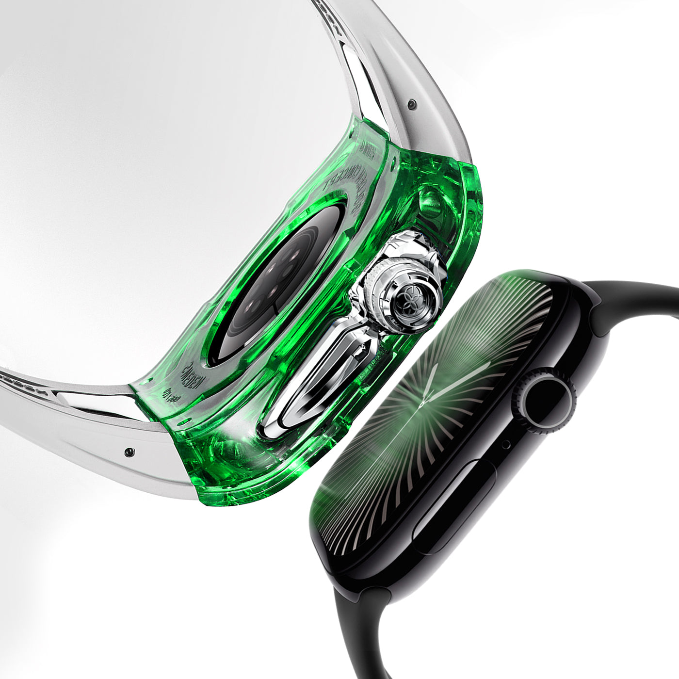 Tailored for the Apple Watch Series 10, this case embodies precision and innovation. Its transparent design in a deep green hue, accented with stainless steel elements, seamlessly enhances your Apple Watch—elevating both form and function while making it a modern statement piece.