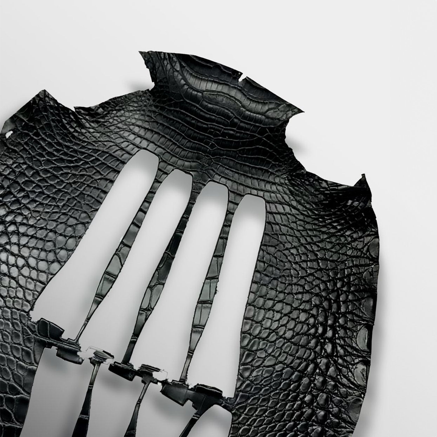 Sourced from the prestigious wetlands of the Mississippi, our genuine alligator leather is known for its distinct, symmetrical scale patterns. Each hide is handpicked for its natural beauty and exceptional durability, ensuring a luxurious finish that develops a rich patina over time.