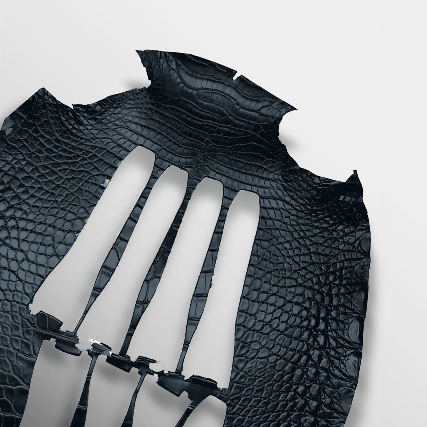 Sourced from the prestigious wetlands of the Mississippi, our genuine alligator leather is known for its distinct, symmetrical scale patterns. Each hide is handpicked for its natural beauty and exceptional durability, ensuring a luxurious finish that develops a rich patina over time.
