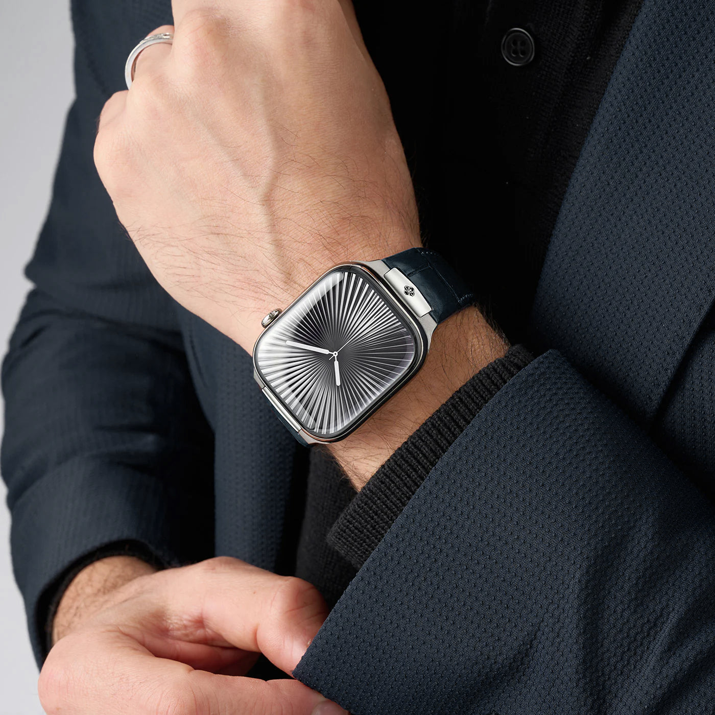 Each Apple Watch strap is presented in packaging that reflects its quality and craftsmanship. Thoughtfully designed, the box features a refined black leather interior that enhances the sense of luxury. This is more than just packaging; it’s a testament to our commitment to excellence, turning the unboxing of your strap into an experience.