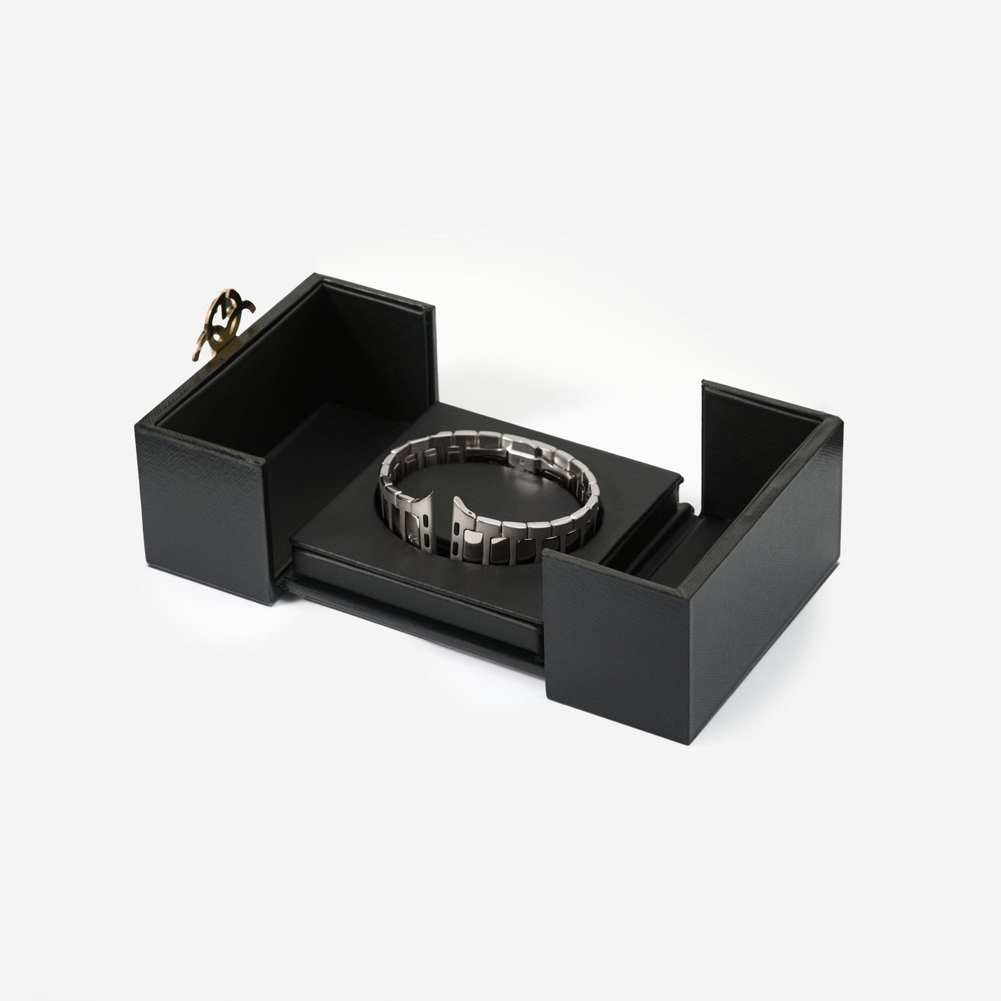 Each Apple Watch strap is presented in a box as exceptional as its contents. Handcrafted with care, it features an elegant black leather interior. This box is not just packaging; it's a testament to our commitment to excellence, making the unveiling of your Apple Watch strap an experience in itself.