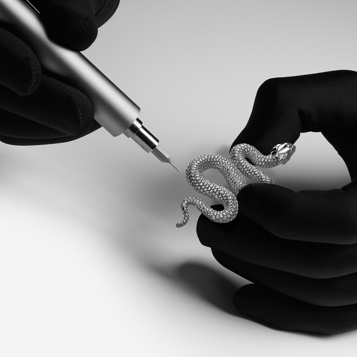 A snake masterpiece, as refined as the finest jewelry. Crafted with precision, each piece is brought to life through the expertise of artisans, becoming a true symbol of craftsmanship and attention to detail.