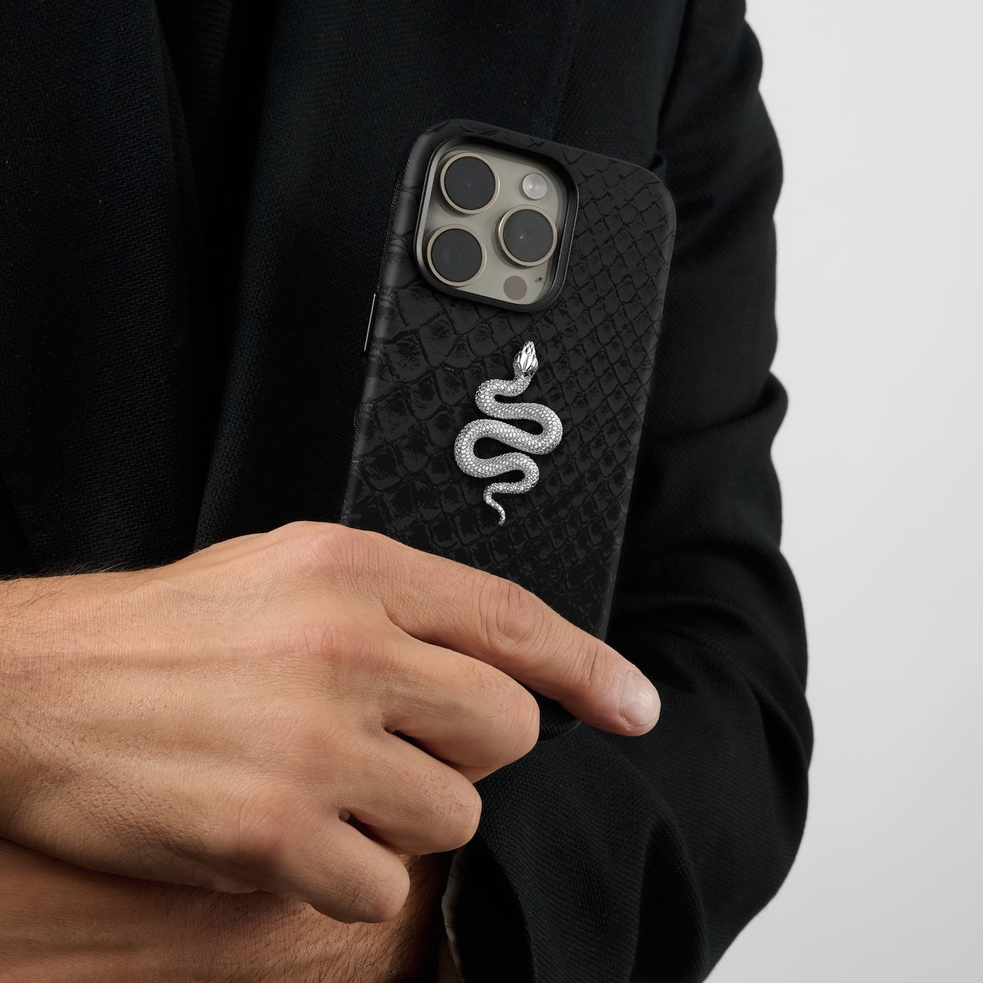 In celebration of the Lunar New Year and the Year of the Snake, we proudly present the Python Edition iPhone Case, crafted from genuine python leather and featuring a striking snake embellishment in silver plating. This masterpiece embodies transformation, luxury, and precision to honor this symbolic year.