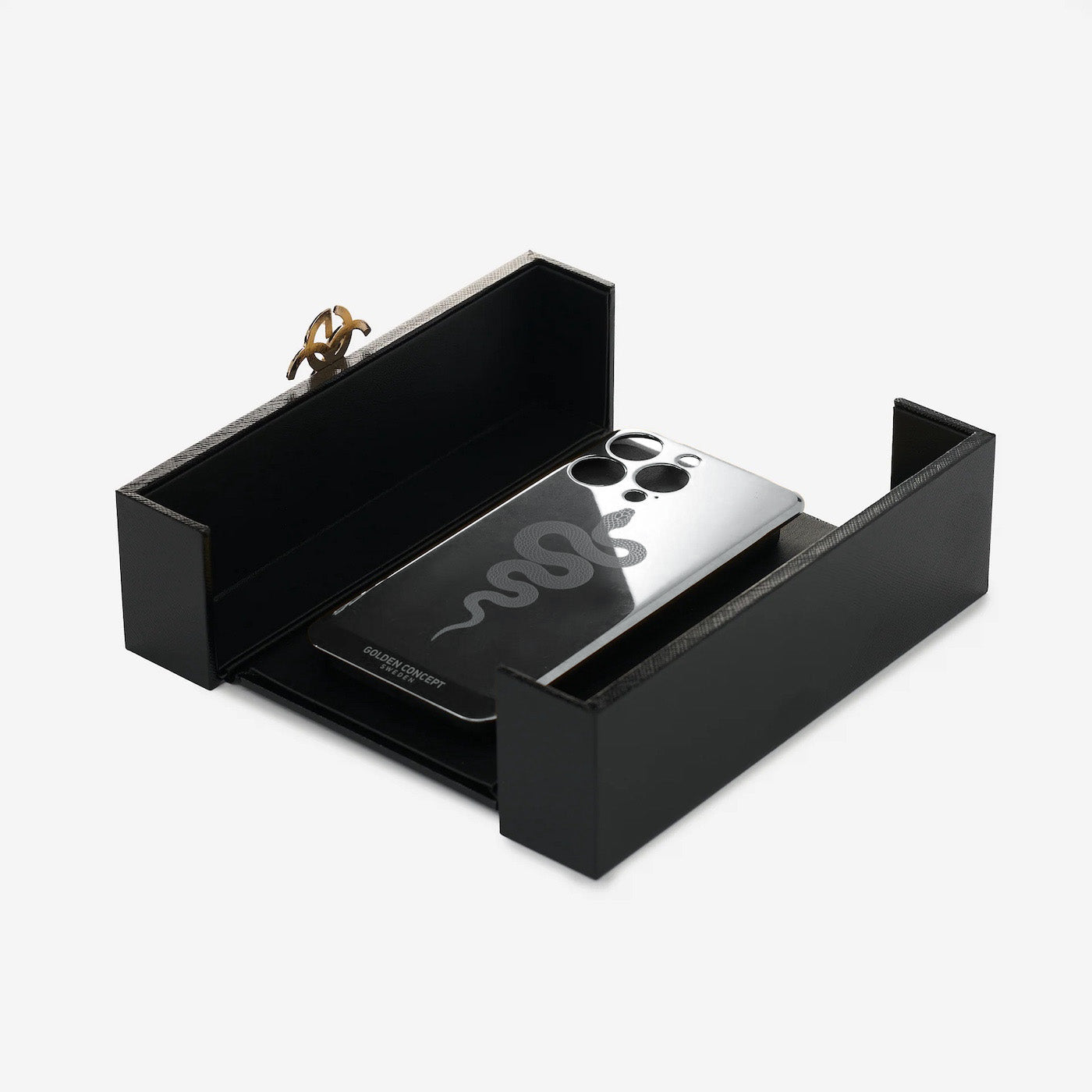 The Magnetic Shield Snake Edition is presented in a box as refined as the case itself. Lined with luxurious leather and featuring a magnet to keep the case securely in place, it reflects a commitment to excellence, making the unboxing experience as exceptional as the case.